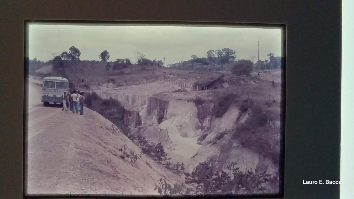 Ainda do meu tempo de Amazônia, essa imagem impressionante de erosão decorrente do desmatamento irracional, obtida junto à estrada Manaus-Caracaraí, km 15, durante trabalho de campo com meus alunos de Ecologia, do curso de Medicina da então Fundação Universidade do Amazonas. Observar dois dos alunos no fundo dessa imensa voçoroca causada pela inconsequente ação humana.